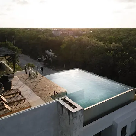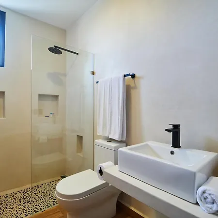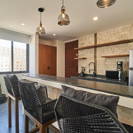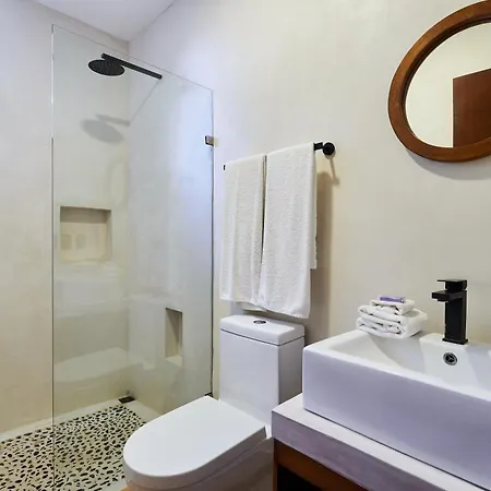 Köksfaciliteterna i Casa Baay - Private 17 Bedroom House, 34 Pax, Rooftop And Pool inkluderar kylskåp, brödrost och köksredskap, som finns i matplats. Gypsea Market, som erbjuder franska rätter, ligger mindre än 650 meter bort. Tack vare busshållplatsen Vanes foraneas, som ligger cirka 10 minuters promenad bort, kan gästerna enkelt utforska Tulum. Boendet har en takpool och en terrass, där du kan koppla av efter en hektisk dag.